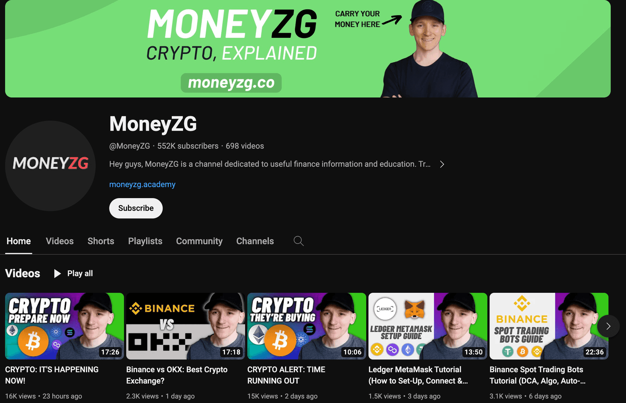 MoneyZG is a superb channel that covers all issues buying and selling, equivalent to tutorials for various exchanges, tips on how to use totally different buying and selling bots and totally different methods, has content material for rookies and skilled merchants, and he throws in an awesome mixture of extra academic content material equivalent to crypto storage and tips on how to navigate the crypto waters safely.