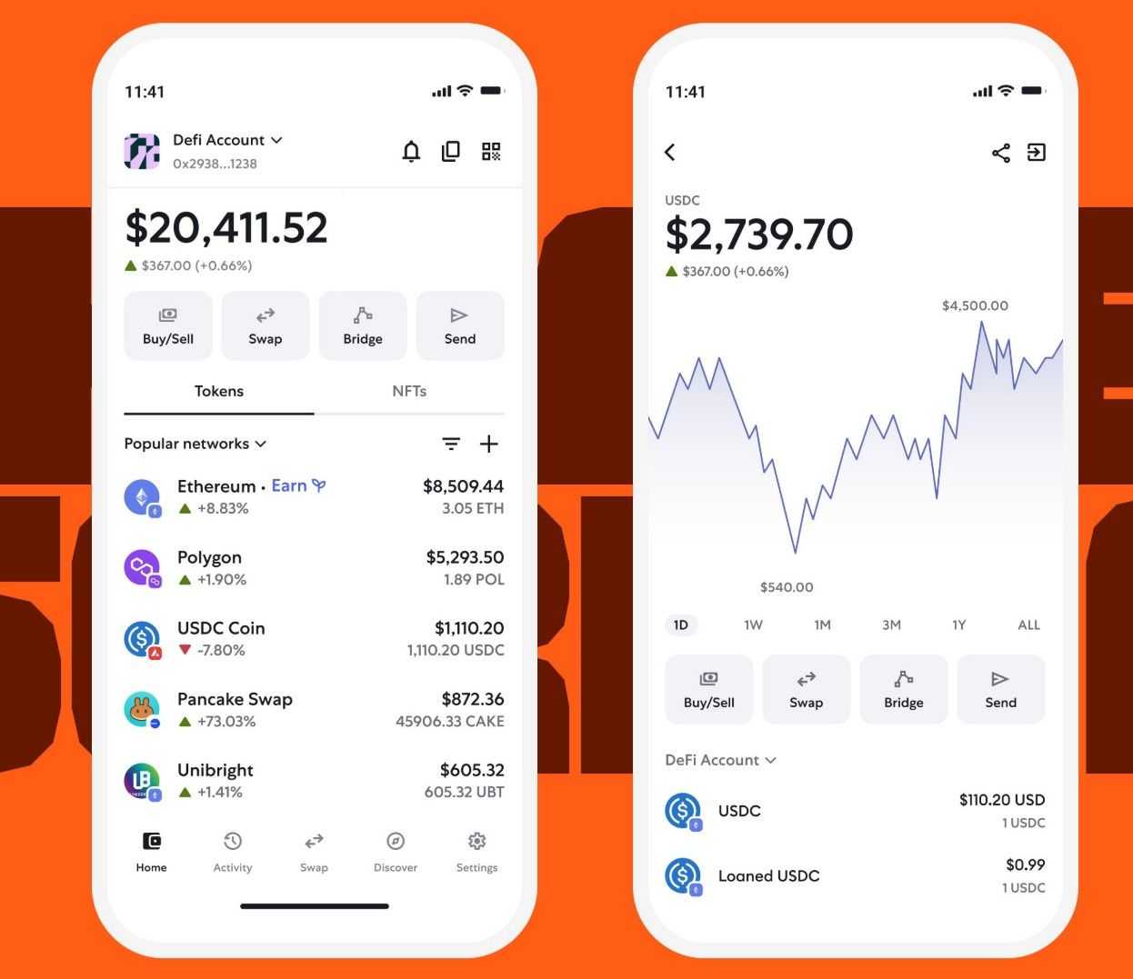 - Swap tokens directly in the wallet using its built-in DEX aggregator.