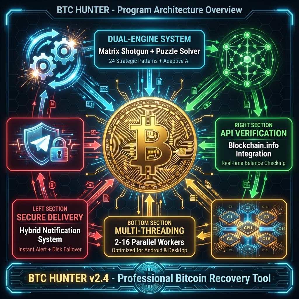 The Matrix strategy is based on the observation that early Bitcoin users often used predictable seed generation or simple patterns. By simulating these patterns through matrix-based offsets, BTC Hunter “hunts” in the most likely sectors of the elliptic curve field. This probabilistic approach, combined with raw speed, is what makes the software a formidable tool for recovering lost assets on this historic anniversary.